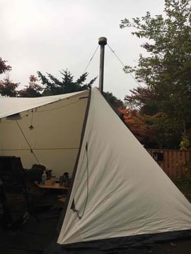 特に煙突は高くすることでドラフト効果を高めます。また煙突トップの周りは障害物がないように設置場所を選びましょう。キャンプ用でしたら煙突トップがテントの高さより60cm以上になる様に煙突を延長する事です。障害物(テント)が煙突トップの近くにあるとテントに当たった風が不規則に跳ね返るので排気を阻害する場合があります。俗に風圧帯と呼ばれています。風圧帯の場合はドラクリでも改善出来ません。