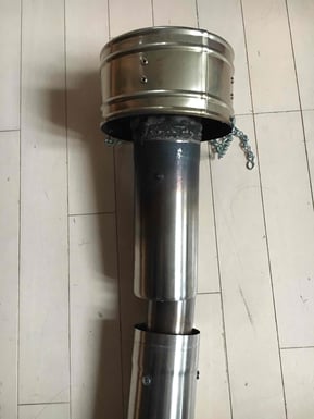 注意:薪ストーブの煙突の立ち上げは下側がメス、上側がオスのはめ込みの組み合わせになり