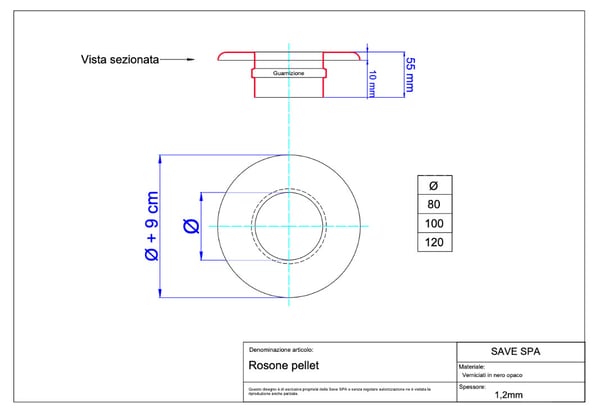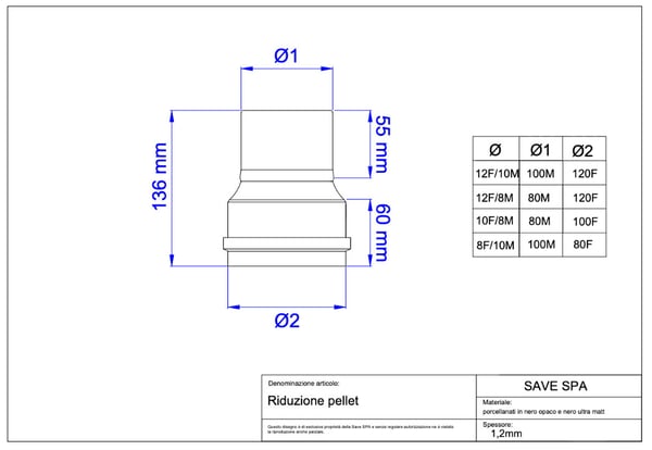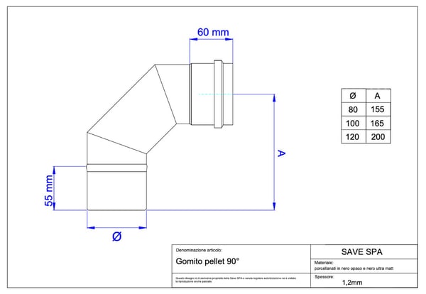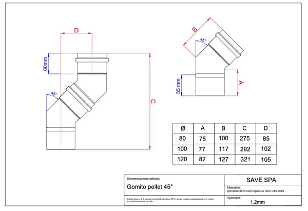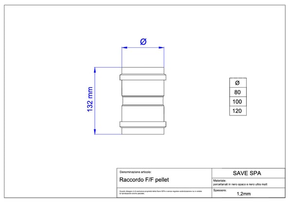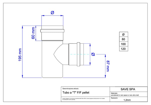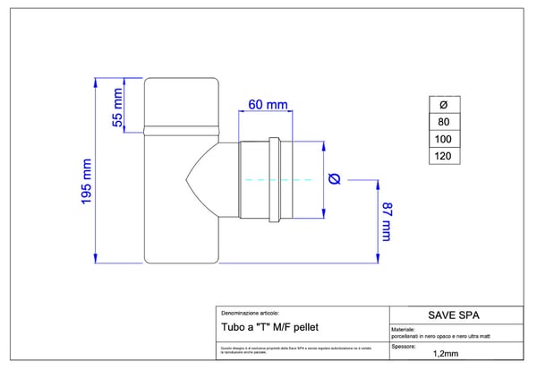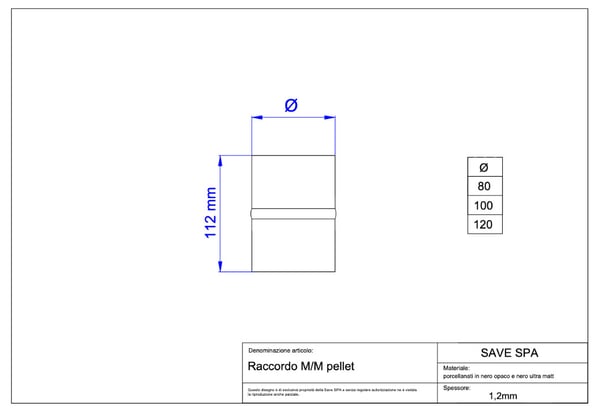 イタリアで主流になってきている排気筒部品です。ストーブ排気がΦ80、煙突の立ち上げ部がΦ100の組み合わせとなります。排気抵抗が少なくなるのでストーブ側の排気ファンの負荷も小さく出来ます。