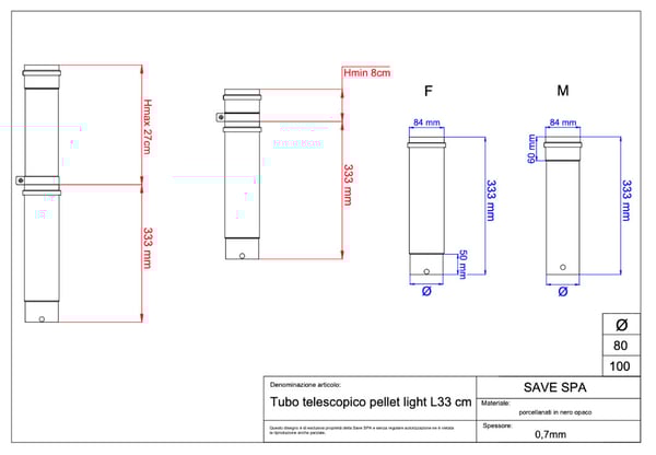 ■SAVE(サーベ)Φ80用33cm伸縮管NERO(黒)LIGHT(ライト)■