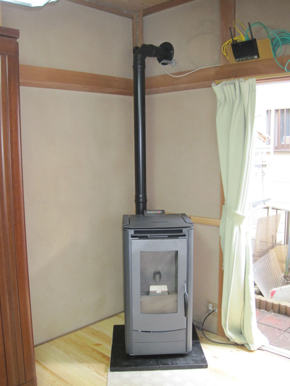 ユーロストーブの地元・神奈川県海老名市に初めてテルモロッシのエコサーモ1000EASY(イージー)を設置いたしました。恥ずかしながら海老名市の設置は初めてです。設置させて頂いたお客様のT様は自転車で弊社までストーブを見に来られて数日でご購入頂きました。設置日は比較的暖かい金曜日だったのですがストーブの搬入、壁穴加工、設置、着火まで非常に喜んで迎えて頂きました。私も「これは初めての着火はT様の指で・・・」と思い、着火ボタンを押して頂きました。こんなに喜んでもらえたのは久しぶりです。また壁穴の位置や搬入経路の確保など段取りして頂きありがとうございました。またT様は非常に器用な方でプロ以上の日曜大工をやられております。私共が持っていない工具なども持っておられて当日お借りいたしました。今後ともよろしくお願いいたします。